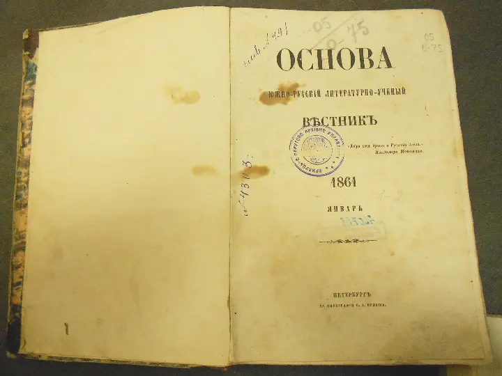 Світлина одного з випусків журналу "Основа" 1861 рік.