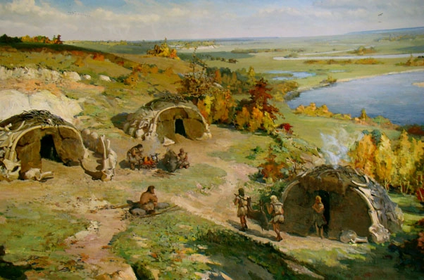 Важливо також пам’ятати, що будь-яка стоянка часів палеоліту буде виглядати ось так як на картинці. Якщо там є такі от примітивні споруди, схожі на халабуди з кісток та шкір - це саме про палеоліт.
