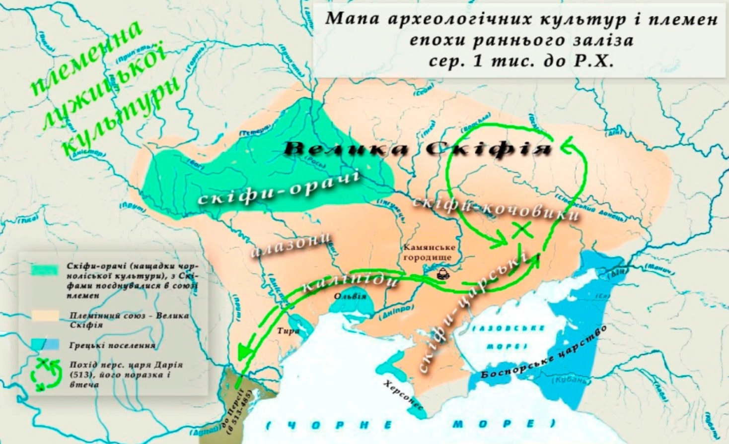 Та найбільш цікавими в цьому переліку є скіфи. Їхня любов до золота створила такий музейний фонд, що його вартість можна оцінювати мільйонами доларів. Про них відомо набагато більше, тому що в часи їхнього існування жив Геродот. Тому під час своєї поїздки на українські землі знаменитий грецький історик описав розселення скіфів. Він їх поділив на кочовиків, орачів, землеробів та царських скіфів. Зараз науковці довели, що орачі, який Геродот ідентифікував як скіфів, насправді були представниками осілої Чорноліської культури. Вони всього лиш платили данину скіфам. Імовірно за захист.