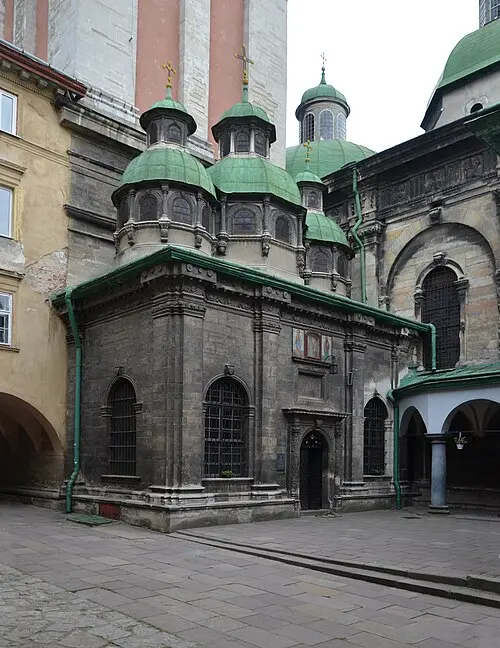 Ця споруда пов’язана із розгортанням братського руху в Україні. Саме тут з’являється перше на українських землях церковне православне братство. Архітектура тут нагадує цілий комплекс будівель. І як сам собор, так і кожний його елемент можуть виноситися на візуальне розпізнавання. Сам собор добре можна розгледіти з частини вулиці, або увійшовши до внутрішнього дворика. До нього приєднана каплиця Трьох Святителів.