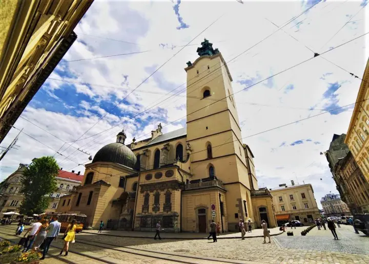 Місце, яке покаже вам католицьку сторону міста. Він є прекрасним зразком готичної архітектури. Зайшовши всередину і поглянувши уважно вгору, можна побачити склепіння, які є відсилкою до готики в архітектурі. Собор багато разів перебудовувався і добудовувався. До єдиного комплексу разом з ним, відносяться каплиці знатних родин міста. Там знаходилися їхні усипальниці. Найбільш відомою серед усіх, є каплиця-усипальниця угорського роду Боїмів. І вона, так само як собор, виноситься на НМТ. Головною фішкою споруди є фасад, який прикрашений барельєфами з релігійними сюжетами в три рівні. Якщо увійти всередину, то складається відчуття, ніби інтер’єр набагато просторіший від компактного фасаду.