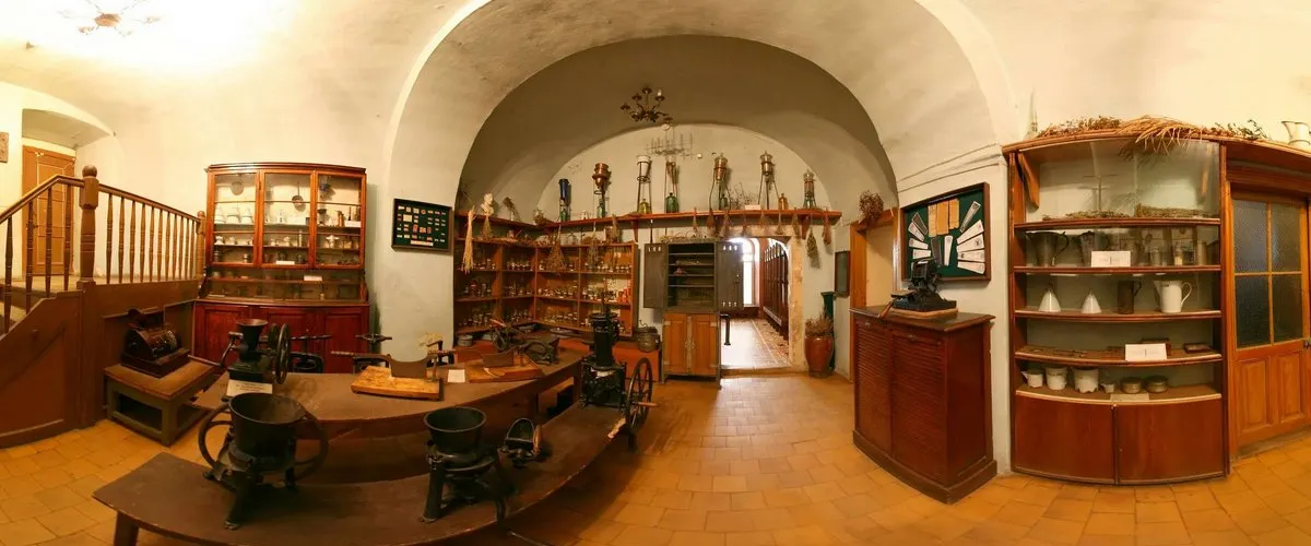 А старій будівля, там же — прямо в центрі, знаходиться аптека, яка працює чи не найдовше в Україні. Вона постійно змінювалася, туди завозили новіші ліки, але інтер’єр лишався історичним. Прямо в провізора там можна придбати квиток і заглянути всередину. За звичними вітринами із сучасними ліками можна побачити як у давнину виготовляли ліки. Безліч давніх інструментів аптекарів з експозиції викликають цікавість і подив у сучасної людини.