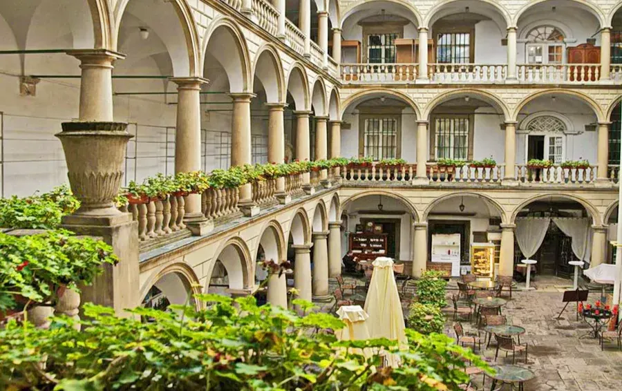 На багатьох фото зі Львова фігурує таке місце, як “Італійський дворик”. Він є частиною цього палацу. Його перший власник будував споруду у стилі італійського ренесансу. Для тамтешньої архітектури були характерні внутрішні відкриті галереї. Унікальність цього місця полягає в тому, що в Україні складно відшукати щось подібне.